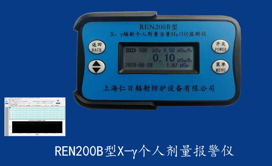 REN200型X、γ個(gè)人劑量報(bào)警儀(又叫X、γ輻射個(gè)人劑量當(dāng)量HP(10)監(jiān)測(cè)儀)內(nèi)置高靈敏度蓋格計(jì)數(shù)管為探測(cè)器,主要用來監(jiān)測(cè)各種放射性工作場(chǎng)所的X、γ以及硬β射線的輻射,具有響應(yīng)快,測(cè)量范圍寬的特點(diǎn)。能顯示工作場(chǎng)所的劑量當(dāng)量率和累積劑量,更換電池時(shí),日期及累積數(shù)據(jù)能永久保存。可選配RenRiPersonal個(gè)人劑量管理軟件,該軟件可存儲(chǔ)多個(gè)人的歷史數(shù)據(jù),能記錄日累積、月累積、年累積、輻照時(shí)長、計(jì)算平均劑量率、扣除或不扣除本底輻射,且以文字和圖譜的方式展現(xiàn)數(shù)據(jù)。廣泛應(yīng)用于核電站、加速器、鋼鐵、化工、同位素應(yīng)用、醫(yī)院、工業(yè)X、γ無